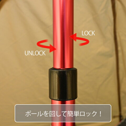 ポール先端に、簡単にロープを接続することが出来るので設営がとっても楽に。