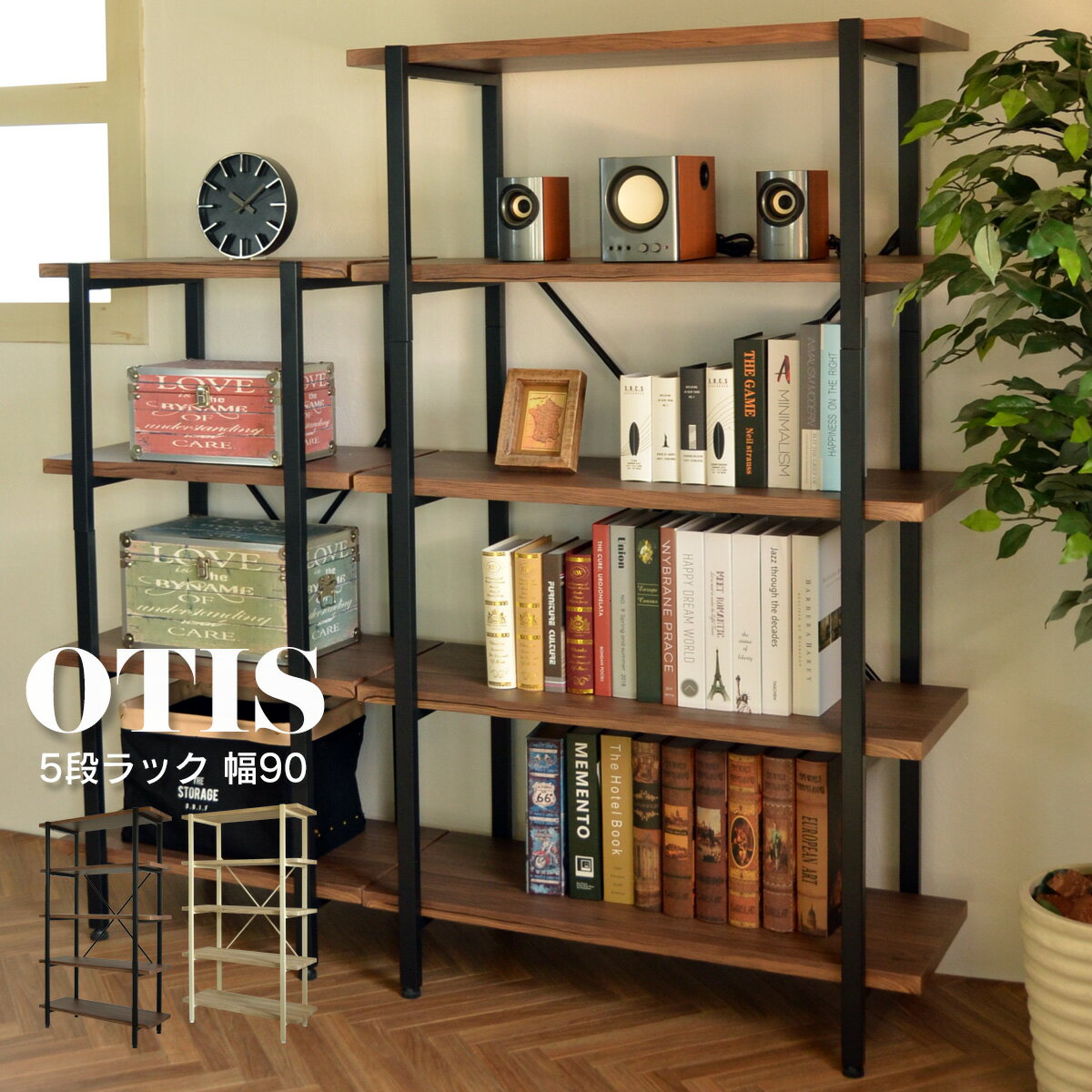 送料無料 ラック 5段 幅90cm オープン 収納 木製 棚 本棚 シェルフ 間仕切り ディスプレイ リビング キッチン 収納家具 飾り棚 オーティス コンパクト スリム 省スペース 一人暮らし おしゃれ デザイン 北欧 モダン